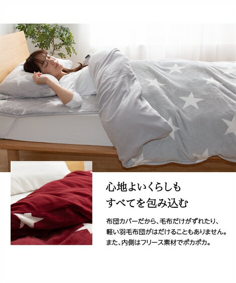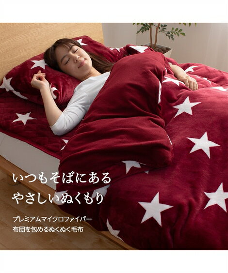 寝具 掛け布団 カバー mofua 布団 を包めるぬくぬく 毛布 星柄 グレー/ネイビー/ワインレッド ダブル ニッセン