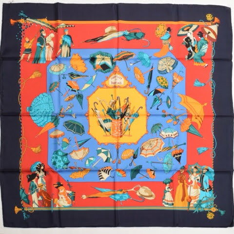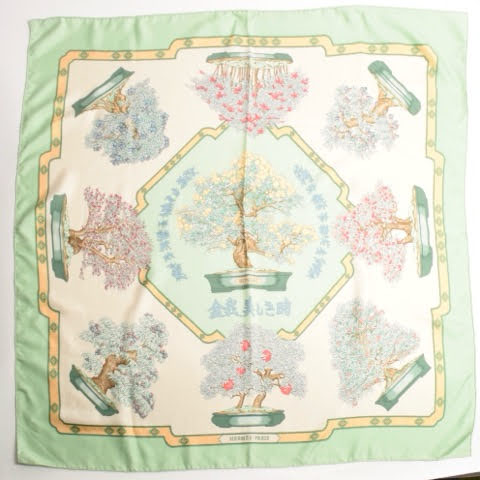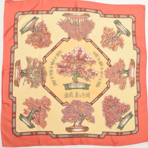 【中古】 エルメス HERMES スカーフ カレ90 シルク BRISE de CHARME 魅惑のそよ風 扇子 和柄 ショール 大判 レディース ブラウン ホワイト マルチ 茶色 白 【ユーズド】p-eg2001187