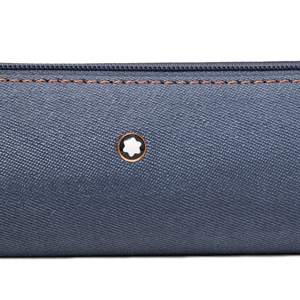 [KH][201910] ブランド モンブラン 品番 124477 色・柄 ブルー 素材 レザー(デニムプリント) 仕様 ファスナー開閉、筆記具2本収容ループ 付属品 サービスガイド、保存袋、箱 サイズ タテ5cm ヨコ18cm マチ4cm 程度