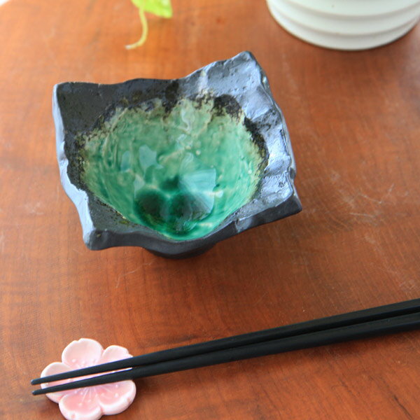 生産地 美濃焼(岐阜県土岐市) 重さ 190g 寸法 横幅11.3cm×縦幅11.3cm×高さ6.4cm 色 黒地にグリーン 用途 小鉢/煮物鉢